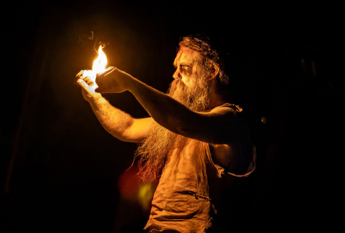 „Man stelle sich zwei nackte Männer vor, die im Schneidersitz und stark schwitzend in einer irdenen Hütte sitzen und sich leicht in einer unvollkommenen, von Feuerzungen gezeichneten Dunkelheit wiegen. Das ist unser Visionsprozess, in dem wir die Themen und Motive entwickeln, die unsere Reisen leiten werden, und so schreiben wir im Allgemeinen auch unsere Texte. Um die Musik zu kreieren, müssen wir natürlich eine andere Form annehmen, indem wir uns mit Gitarren hinsetzen und die Teile und Arrangements ausarbeiten, von denen wir einige alleine und andere gemeinsam machen. Aber es ist wichtig, dass die Arbeit unsere Ethik widerspiegelt und nicht körperlos ist, dass sie in Räumen und Kontexten stattfindet, die unsere allgemeine Absicht und Inspiration widerspiegeln.“