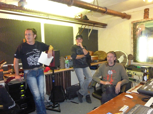 Als schließlich gegen 18:00 Uhr der allergrößte Teil der geladenen Gäste vor Ort war, begab sich die Schar in das kleine Tonstudio der fidelen Rabenmusikanten.