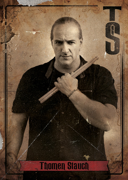 Kesselwart Thomas ,Thomen‘ Stauch, der seit der Gründung bis 2005 bei Blind Guardian auf deren Drumhocker saß, schwingt die Stöcke nun bei Serious Black gewohnt gekonnt.