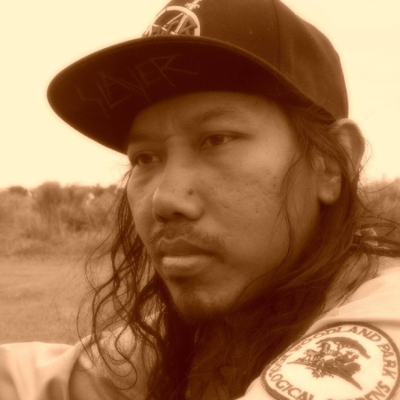 I started doing covers for small local underground bands in the late 90s. In the mid-2000s, I did covers for some bigger bands whose albums were distributed nationwide in Indonesia. In the early 90s, when official merch was hard to find and very expensive in my area in Borneo, I made my own hand-painted band T-shirts. Friends would come with a blank T-shirt and I would paint it. I usually traded a cassette of a Metal album for a painting job. That's actually how I learned how to do Metal artwork.